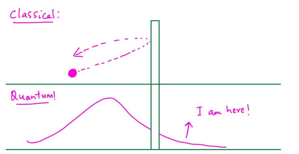 Quantum tunnelling is one of the most counterintuitive phenomena in physics. Imagine throwing a ball at a wall, and instead of bouncing back, it passes right through! That’s what quantum tunneling means. Of course, this never happens in everyday life, but if you shrink the ball down to an extremely small size and make the wall very thin, it becomes possible. In the quantum world, there’s a non-zero probability that a particle can be found on the other side of a barrier, even though it doesn’t have enough energy to climb over it. The barrier is not literally punched through. Instead the particle’s wave like description extends into and beyond the barrier, and there is a chance to detect it on the other side.