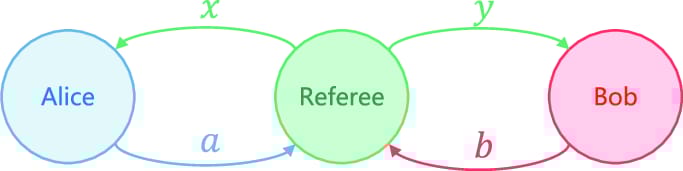 The CHSH game was discussed in episode #24 (read here) involves three participants: a referee, Alice, and Bob.