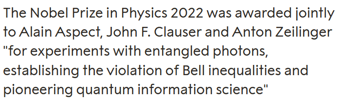 For their groundbreaking work on these experiments, Alain Aspect, John F. Clauser, and Anton Zeilinger were awarded the Nobel Prize in Physics in 2022.